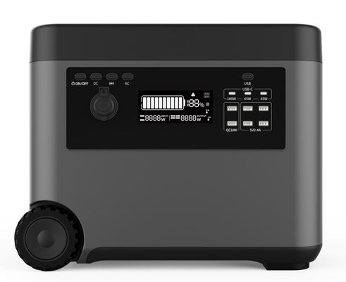 This product is a 2000watts output portable power station suitable for home emergency backup, outdoor travel, emergency rescue, and field work applications. The product is equipped with a built-in lithium battery, which is designed as a 15-series 3-parallel design with a voltage of 48Vdc~153.2V. It has an inverter AC output of 220V/50-60Hz pure sine wave with AC input, MPPT solar power and automotive inputs, and multiple DC output ports including USB, QC3.0, TYPE-C, and automotive cigarette lighter interfaces.